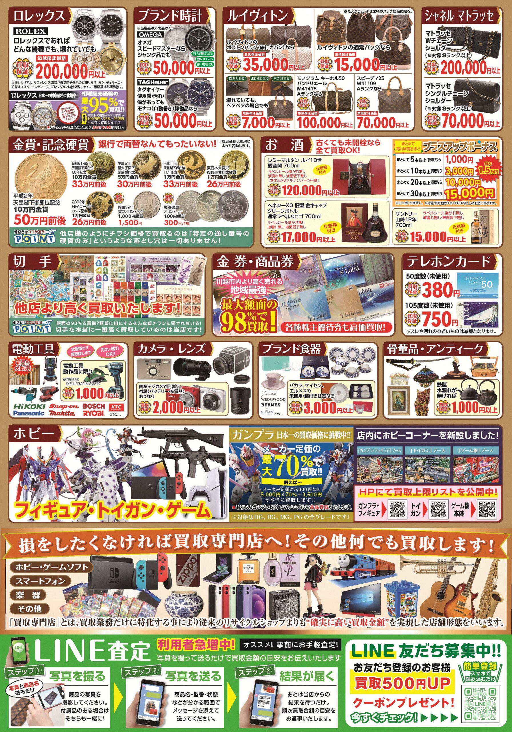川越 東松山 坂戸 川島町 鶴ヶ島 若葉 桶川 吉見町 比企郡エリアで月間買取金額No.1の買取専門店です。