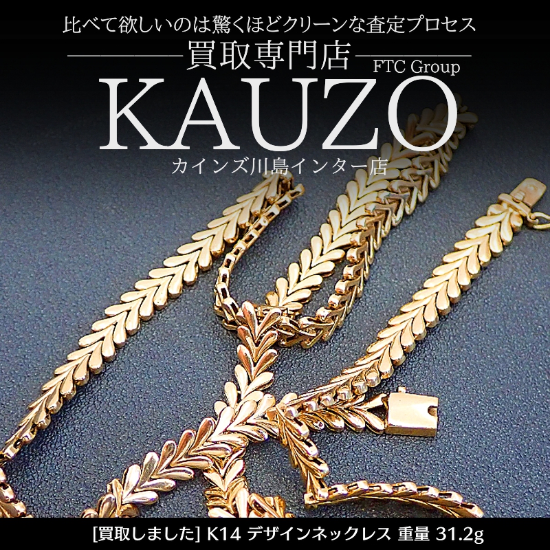 『 K14 デザインネックレス 重量31.2g 』を買取させていただきました。