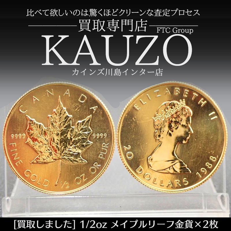 『 1/2オンス メイプルリーフ金貨×2枚 総重量31g 』を買取させていただきました。