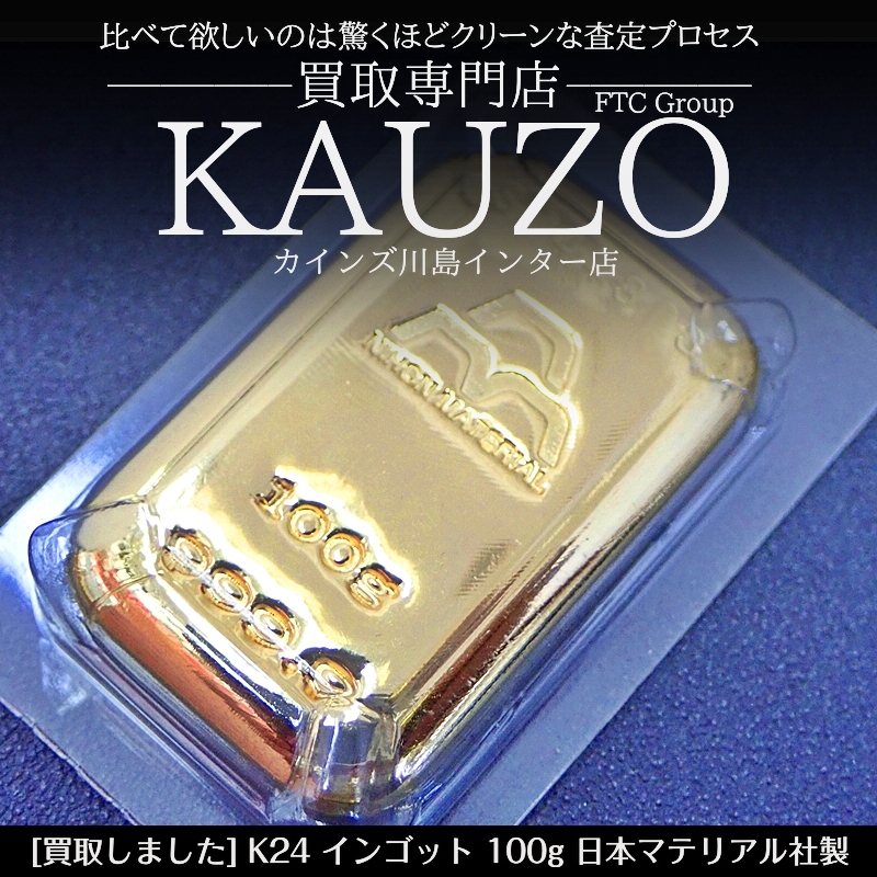 『 K24 インゴット 100g 日本マテリアル社製 』を買取させていただきました。