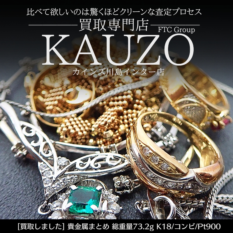 金 ・プラチナ、ダイヤモンド、ブランド品、ロレックス 、金券 を売るなら「買取専門店KAUZO カインズ川島インター 店」へ。