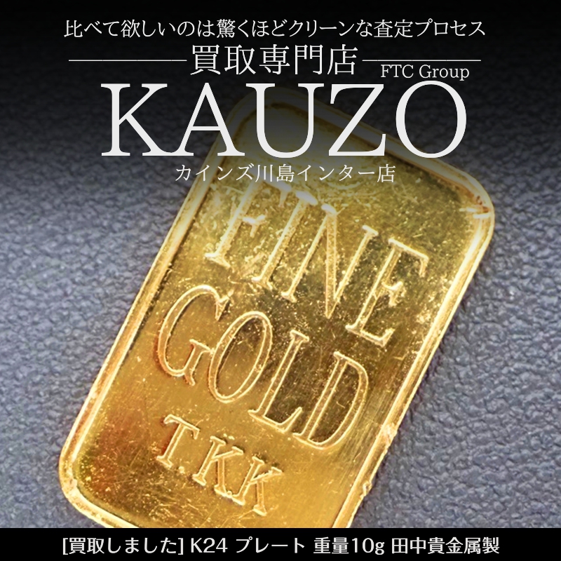 『 K24 プレート 10g 田中貴金属製 』を買取させていただきました。