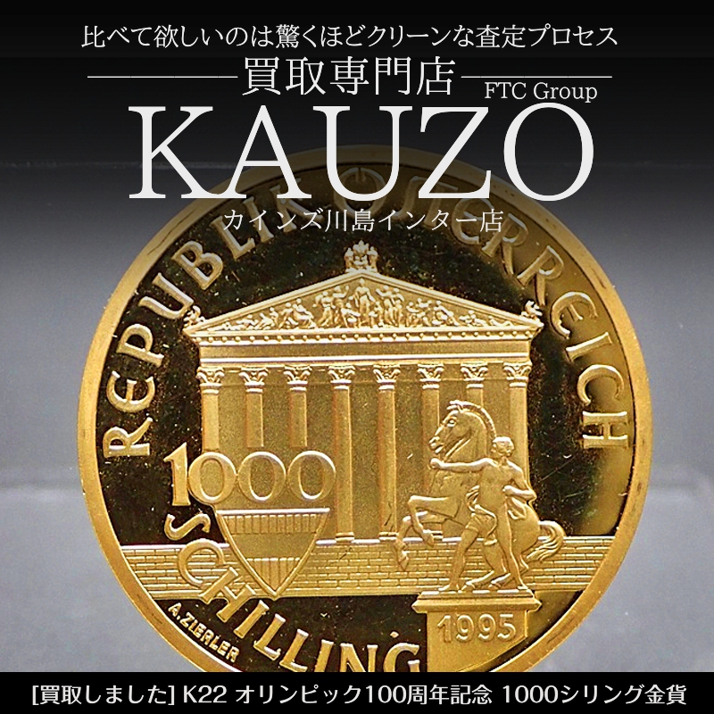 『 K22 オリンピック100周年記念 1000シリング金貨 17.0g 』を買取させていただきました。