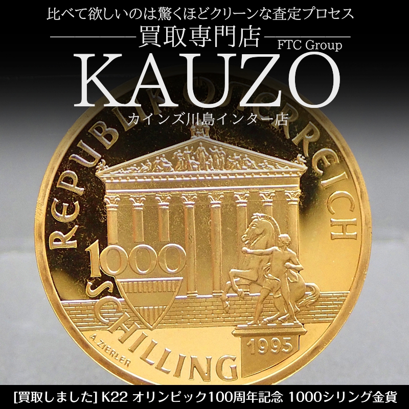 『 K22 オリンピック100周年記念 1000シリング金貨 17.0g 』を買取させていただきました。
