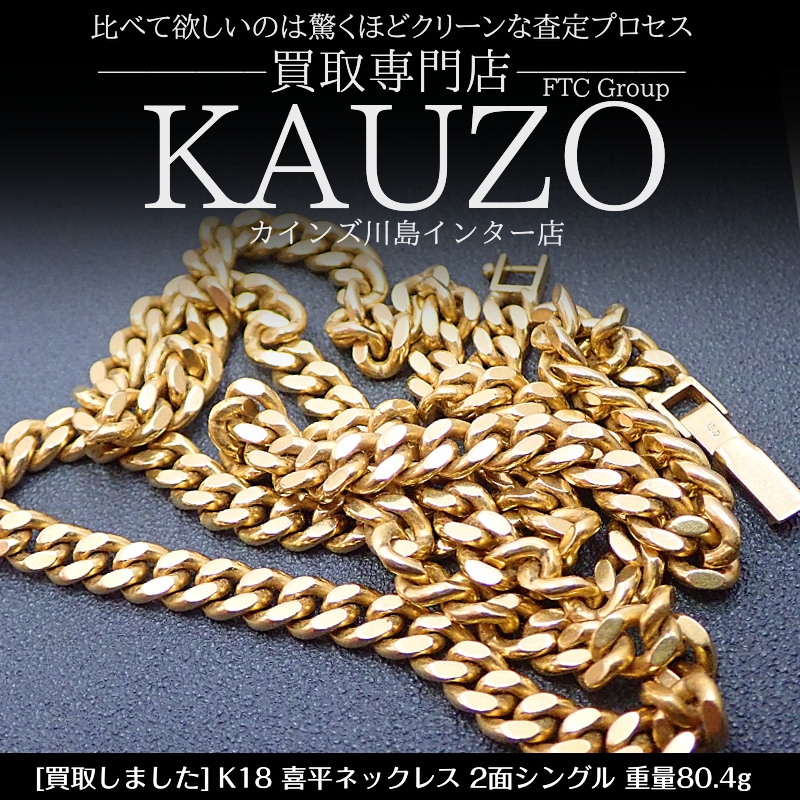 『 K18 喜平 ネックレス 総重量80.4g 』を買取させていただきました。