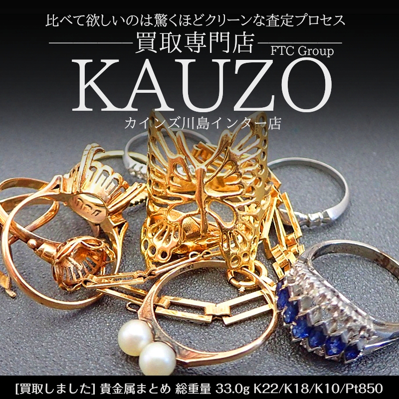 金 ・プラチナ、ダイヤモンド、ブランド品、ロレックス 、金券 を売るなら「買取専門店KAUZO カインズ川島インター 店」へ。