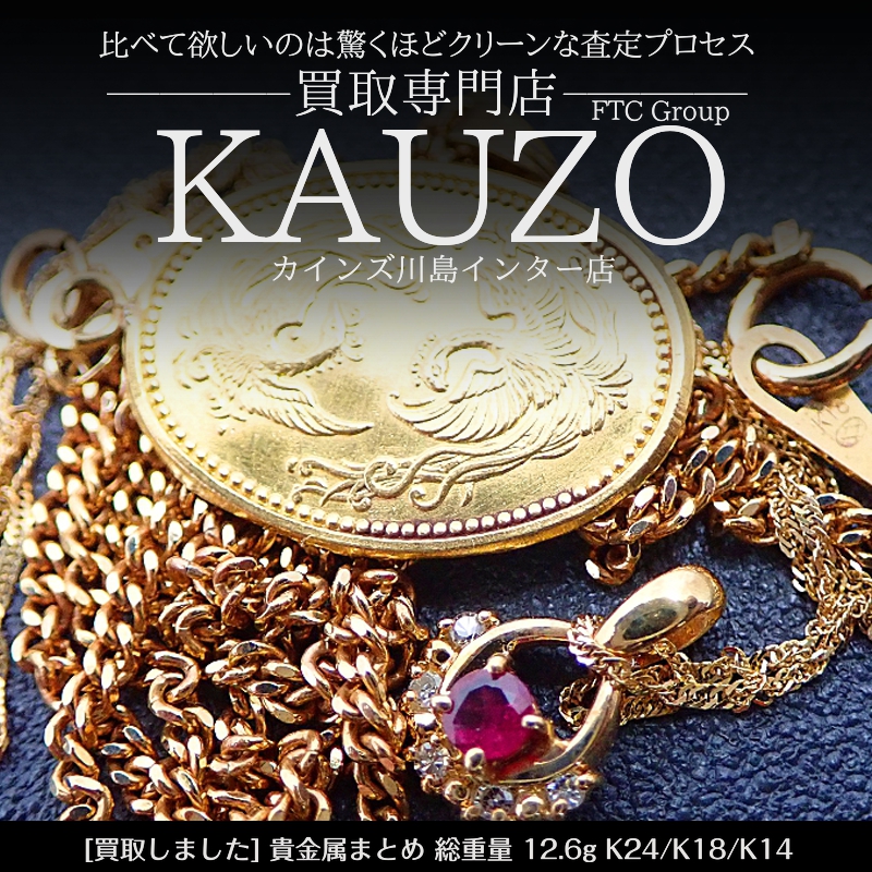 金 ・プラチナ、ダイヤモンド、ブランド品、ロレックス 、金券 を売るなら「買取専門店KAUZO カインズ川島インター 店」へ。