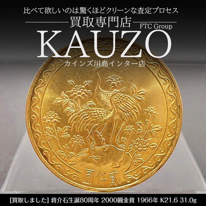 『 蒋介石生誕80周年 2000圓金貨 1966年 K21.6 31.0g 』を買取させていただきました。