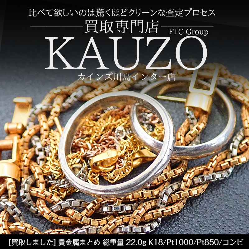 金 ・プラチナ、ダイヤモンド、ブランド品、ロレックス 、金券 を売るなら「買取専門店KAUZO カインズ川島インター 店」へ。