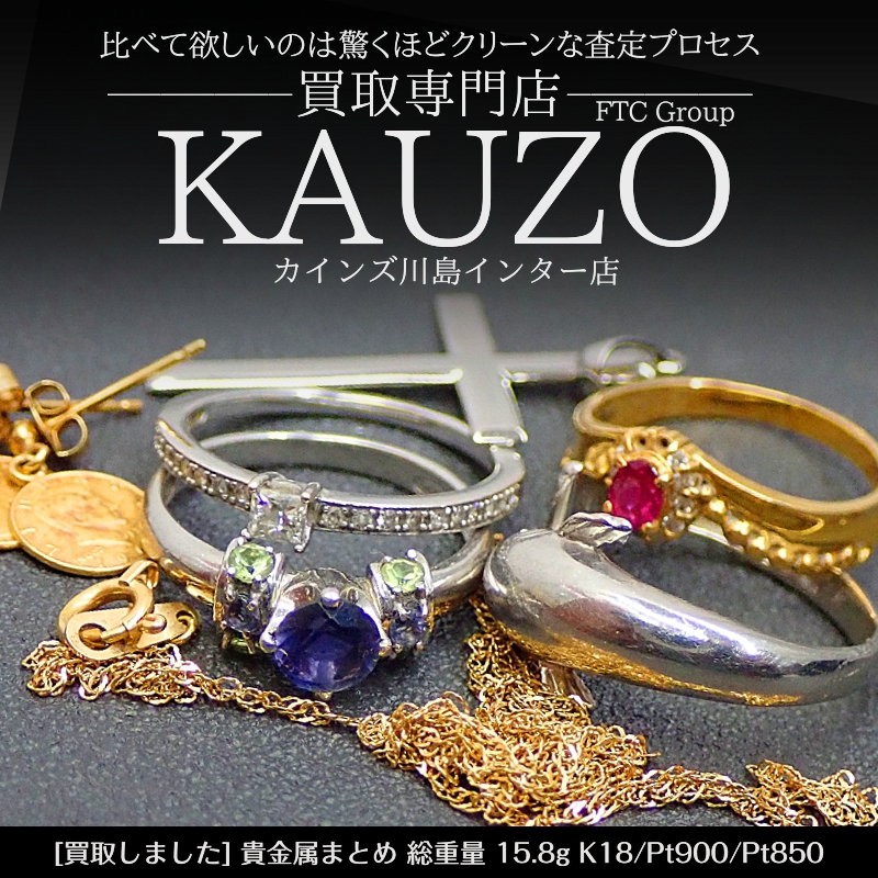 金 ・プラチナ、ダイヤモンド、ブランド品、ロレックス 、金券 を売るなら「買取専門店KAUZO カインズ川島インター 店」へ。